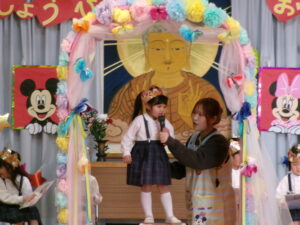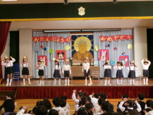 令和8年1月27日(火)1月生まれ誕生会を行いました。とても上手にお名前と大きくなったら何になりたいかを、発表することが出来ました。先生からは、「好きすぎて滅」を踊り、アンコールまで。子ども達も存分に楽しく過ごしました。