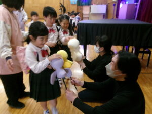 令和8年2月2日(月)人形劇「みにくいあひるのこ」。はじまりは「ポエムポエム」。お人形たちのゆかいなやりとりに、子ども達は大笑い。すっかり人形劇に夢中になってしまいました。「みにくいあひるのこ」は、心がほっこりあたたまるお話で、子ども達から「がんばれ」と応援する声が聞かれました。かわいいお友だちと、最後にふれあうこともできて、楽しい時間を過ごしました。