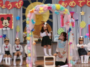 令和5年6月26日(月)6月生まれ誕生会 ・大きくなったら何になる・・・・消防士 ・エルサなど、いろいろな夢を発表してくれました。歌と遊戯の発表の後は、先生からのプレゼント!「透明人間の兄弟の話」という、色水で変身していく、ペットボトルシアターを見ました。ピアノにのせて、ワクワク楽しいシアターで、皆大喜びで、見てくれました。