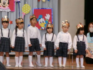 令和7年9月30日(火)9月生まれ誕生会 自分の夢を発表し、(うさぎのカメ)(まつぽっくり)を上手に披露しました。そして、なんと今日は、光明幼稚園合唱団部のみなさまが、「となりのトトロ」の歌を歌ってくれて、会場が盛り上がりました。