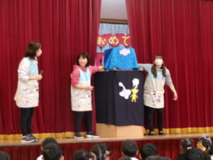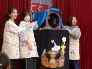 令和5年10月2日(月)すまいるタイム⓸ 人形劇団こぱんさんが来園し、「3びきのやぎのガラガラドン」の人形劇を観ました。楽しいお話に、子供達も笑ったり、応援したりと最後まで夢中になって観ていました。