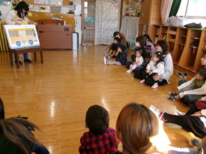令和7年11月14日(金)「バスドライブ」 お天気ピカピカのドライブ日和。ふれあい遊びと絵本も乗り物づくし。バスに乗るのが好きなお友だちは、ウキウキ気分でした。帰ってきたあとは、園庭で元気に遊びました。